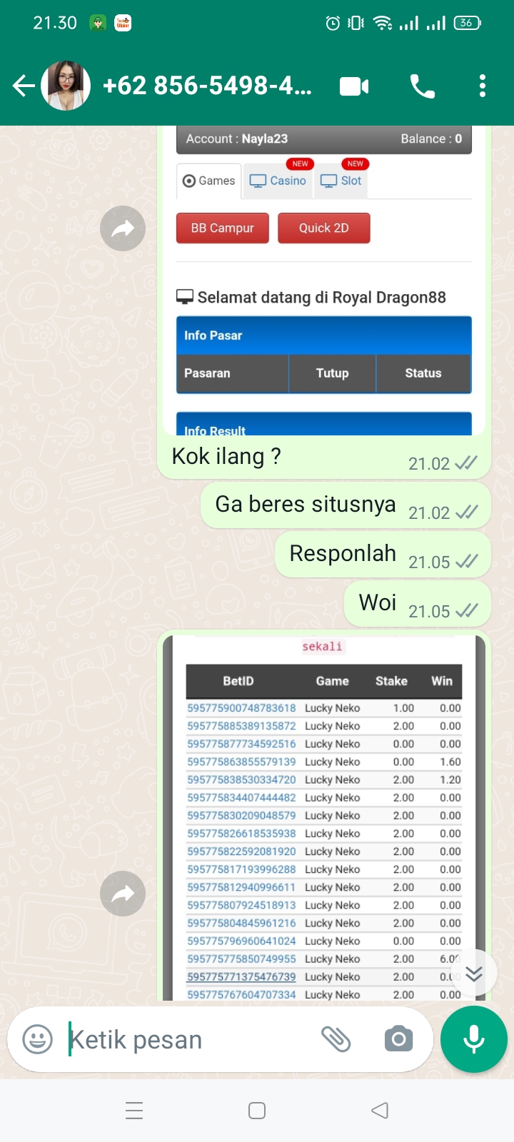 Saya depo di royaldragon88, saldo masuk tp tiba-tiba hilang. Cek di riwayat betting, ternyata dibuat main sendiri.