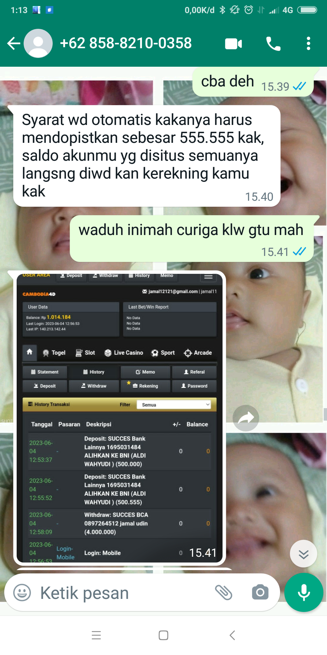 Padahal kemarin belum melakukan betting sama sekali. Akun diblokir setelah melakukan deposit 1.000.359.